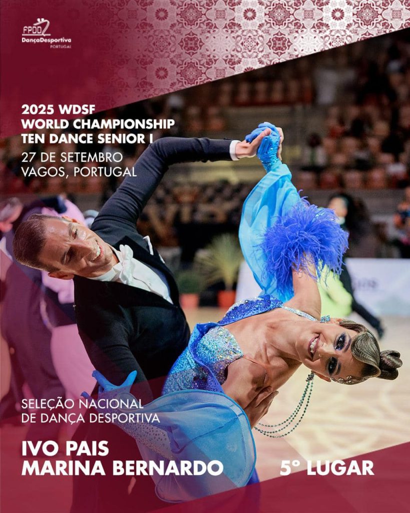 No passado Sábado, 27 de setembro de 2025, a localidade de Vagos foi palco de um momento histórico para o desporto português. O par Ivo Pais & Marina Bernardo conquistaram o 5º lugar no Campeonato do Mundo de Dança Desportiva na categoria de Séniores 1 Dez Danças, elevando o nome de Portugal a um novo marco desta modalidade.